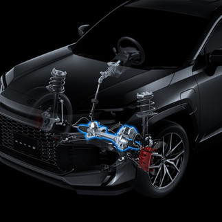 另外底盤部分也進行強化,除了驅動電池被巧妙運用作為補強結構,不僅提升了車身剛性,更達成低重心化;底盤前半段 導入「GR Performance Damper 性能避震穩定桿」與「GR 加強底盤結構桿」,能迅速吸收車體變形產生的微小震動,抑制不適的扭轉感與不安定晃動。