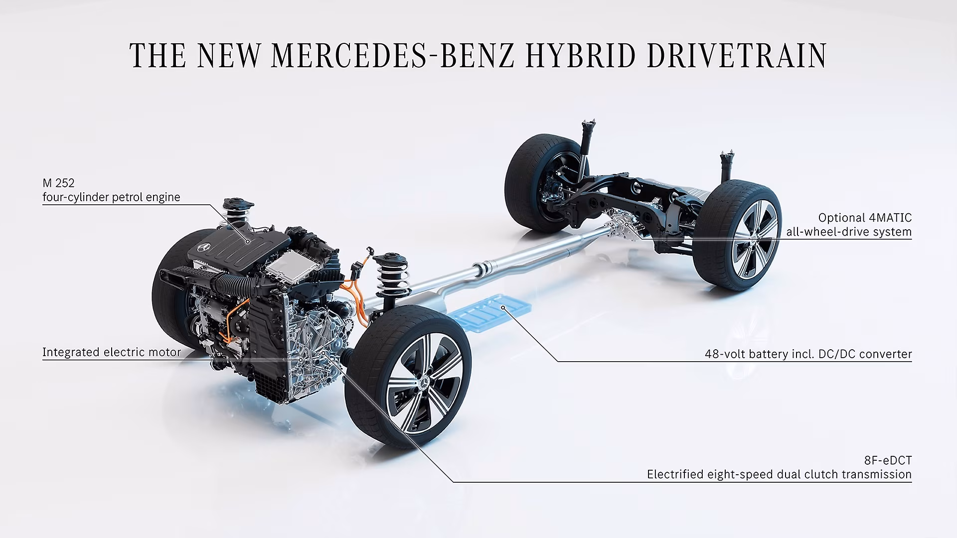 內燃機部分,這次 Mercedes-Benz 不再採用與 Renault-Nissan 共同研發的 M282 引擎與自家研發的M260/M264 引擎,而是改採與吉利控股(Geely Holding)深度結盟的 M252 1.5 四缸渦輪增壓引擎搭配 48V 輕油電系統的燃油車型。