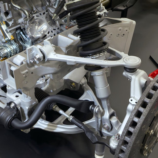 動力經由 CFRP 扭力管傳輸至後軸的變速箱單元,整合了馬達發電機、配備濕式啟動離合器 WSC 的全新 8 速自排和機械式 LSD。系統綜合最大輸出功率目標值超過 650ps,最大扭矩目標值超過 850Nm,同時實現了 45:55 的理想前後重量配比。